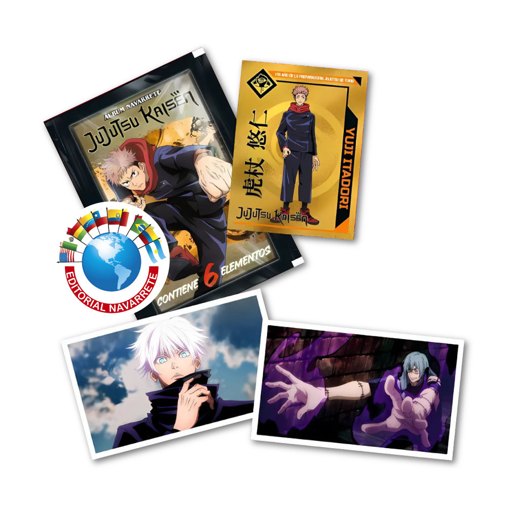 Completa tu colección con el Paquetón x 50 sobres de figuritas Jujutsu Kaisen, la mejor manera de acercarte al mundo lleno de acción, hechicería y maldiciones de la famosa serie de anime y manga. Cada sobre incluye figuritas únicas y llenas de color, con tus personajes favoritos y momentos icónicos de la saga.